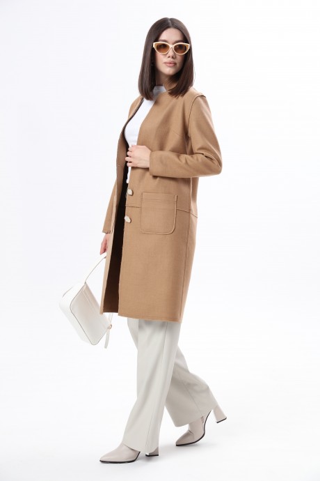 Трендовое женское облегченное пальто из двухсторонней шерстяной ткани. Пальто выполнено без подкладки, благодаря чему подойдет в качестве легкой демисезонной одежды и станет необычной альтернативой кардигану или жакету. Детали модели: прямой силуэт, слегка зауженное к низу, втачные рукава, модельный воротник-стойка, застежка на пуговицы, большие накладные карманы. Пальто сшито с оригинальным эффектом «шва наружу», благодаря чему смотрится необычно и стильно. Изделие декорировано отделочной строчкой. Фактурная ткань прекрасно дополняет лаконичный дизайн и делает модель подходящей для образов в классическом, повседневном и авангардном стиле.