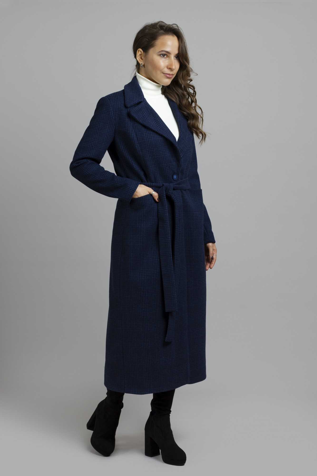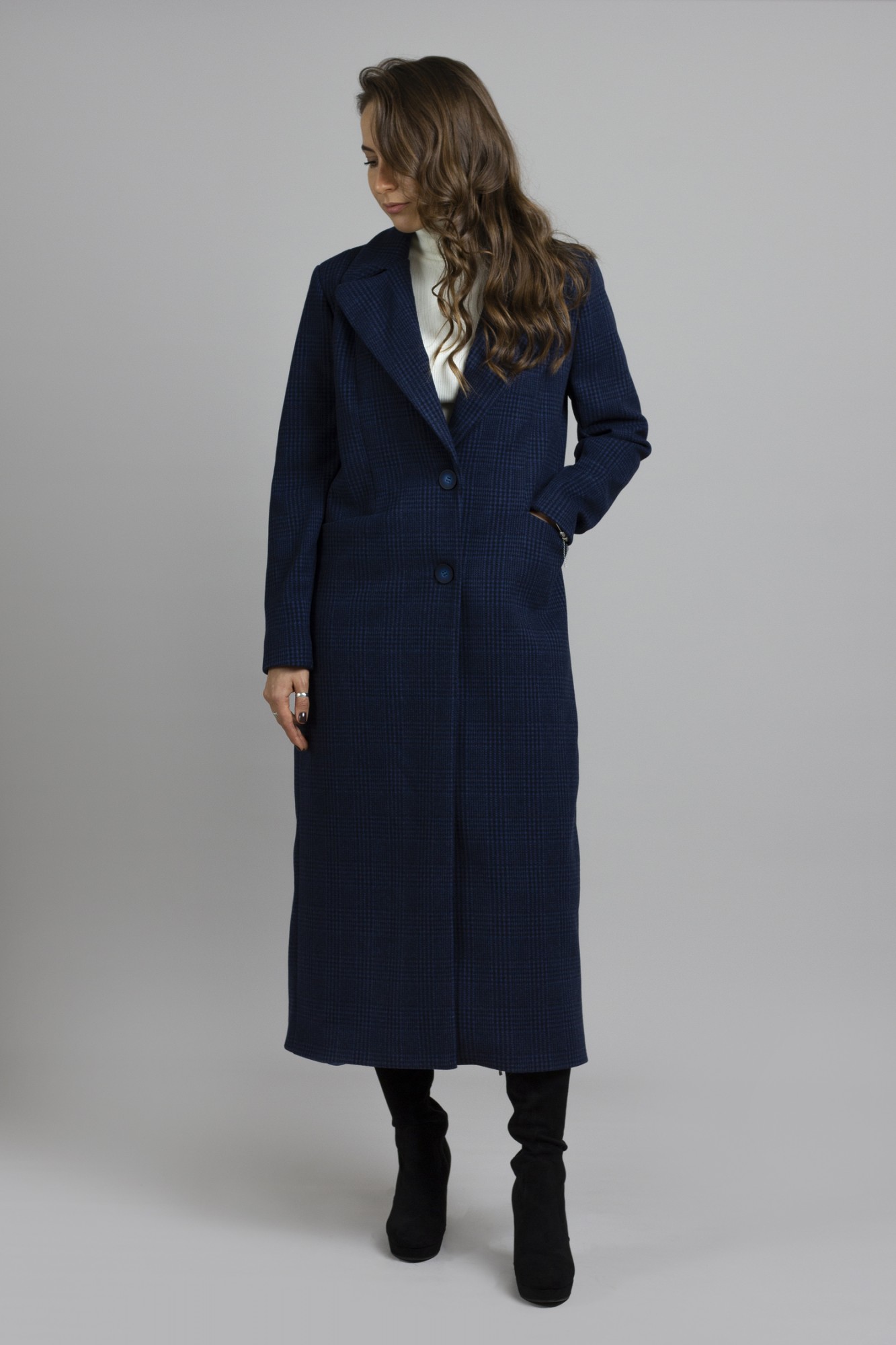 Пальто Mirolia 1089 синяя клетка с ID товара 353652