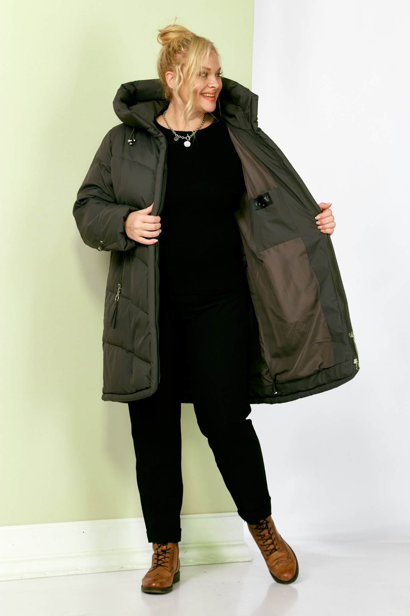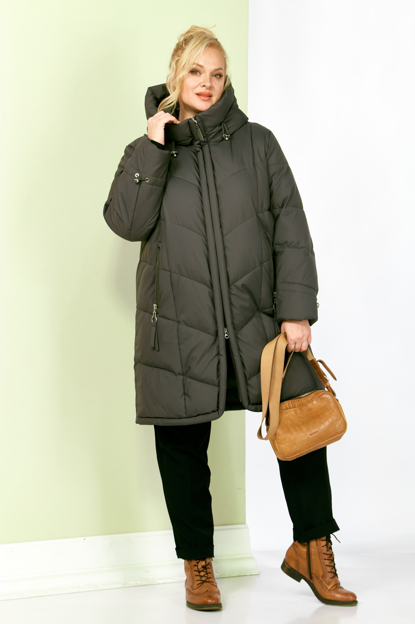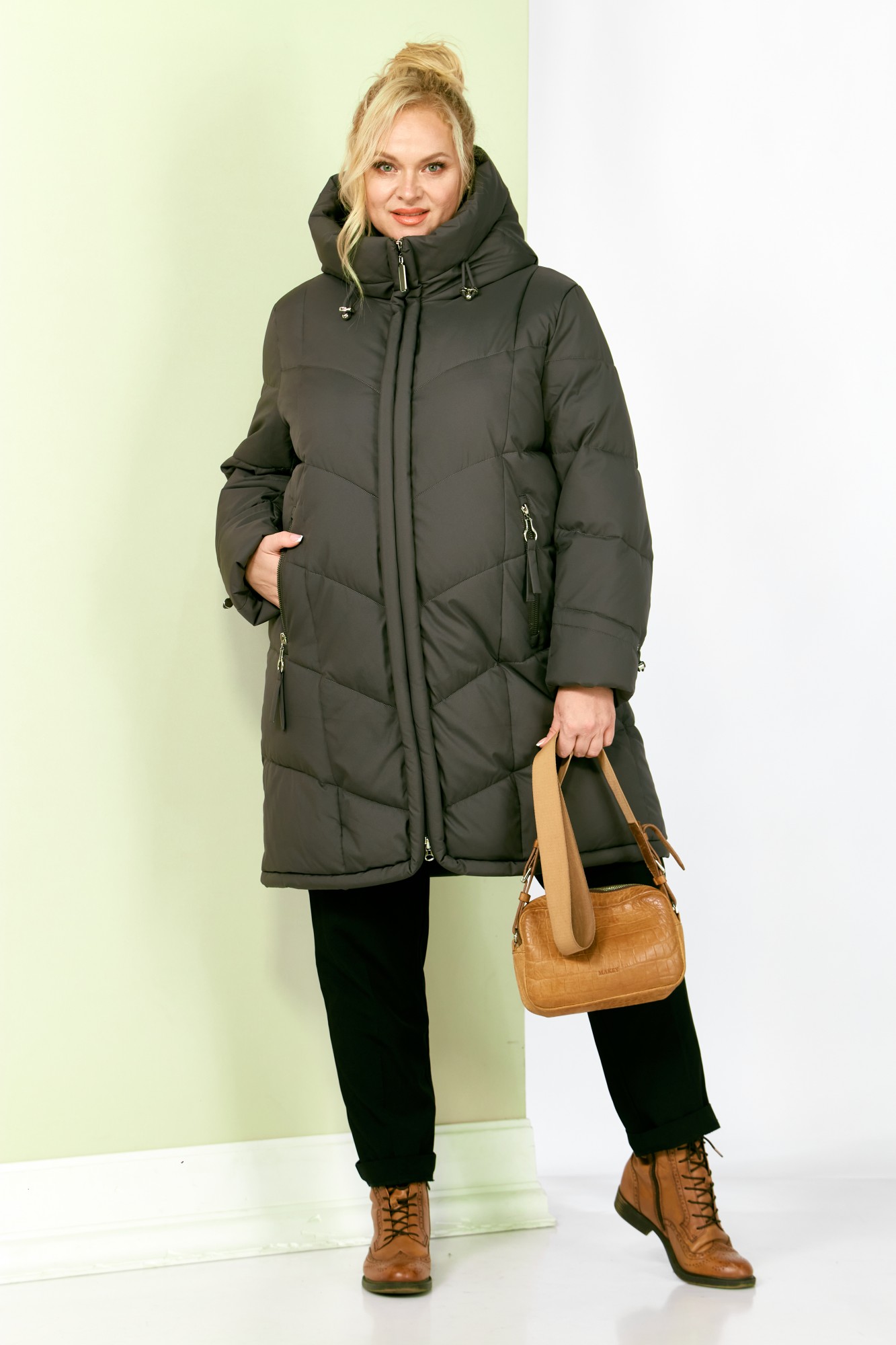 Стильное и модное женское полупальто, которое идеально подойдет для холодных дней, обеспечивая комфорт и защиту от ветра. Изделие прямого, классического стиля. Модель выполнена из курточной матовой ткани высокого качества, непромокаемая. Утеплитель «Холлофайбер» хорошо держит форму и не сбивается. По переду центральная застежка на молнии. Карманы прорезного типа с декоративным элементом. Рукав втачной. Капюшон не съемный, регулируется декоративным шнуром. По переду и спинке рельефные швы. Низ бортов с закругленным краем.