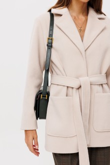 Полупальто двубортное, свободного кроя, на подкладке , застежка центральная однобортная на три потайные кнопки, пояс съемный, карманы накладные. По спинке средний шов. Рукав втачной двухшовный со спущенной линией плеча. Изделие выполнено из мягкой пальтовой ткани. Пальто однозначно станет важным атрибутом в вашем гардеробе, поскольку универсальный фасон и крой подойдет под любой тип фигуры и образ, за счет комфортной длины можно сочетать с юбками миди, макси.