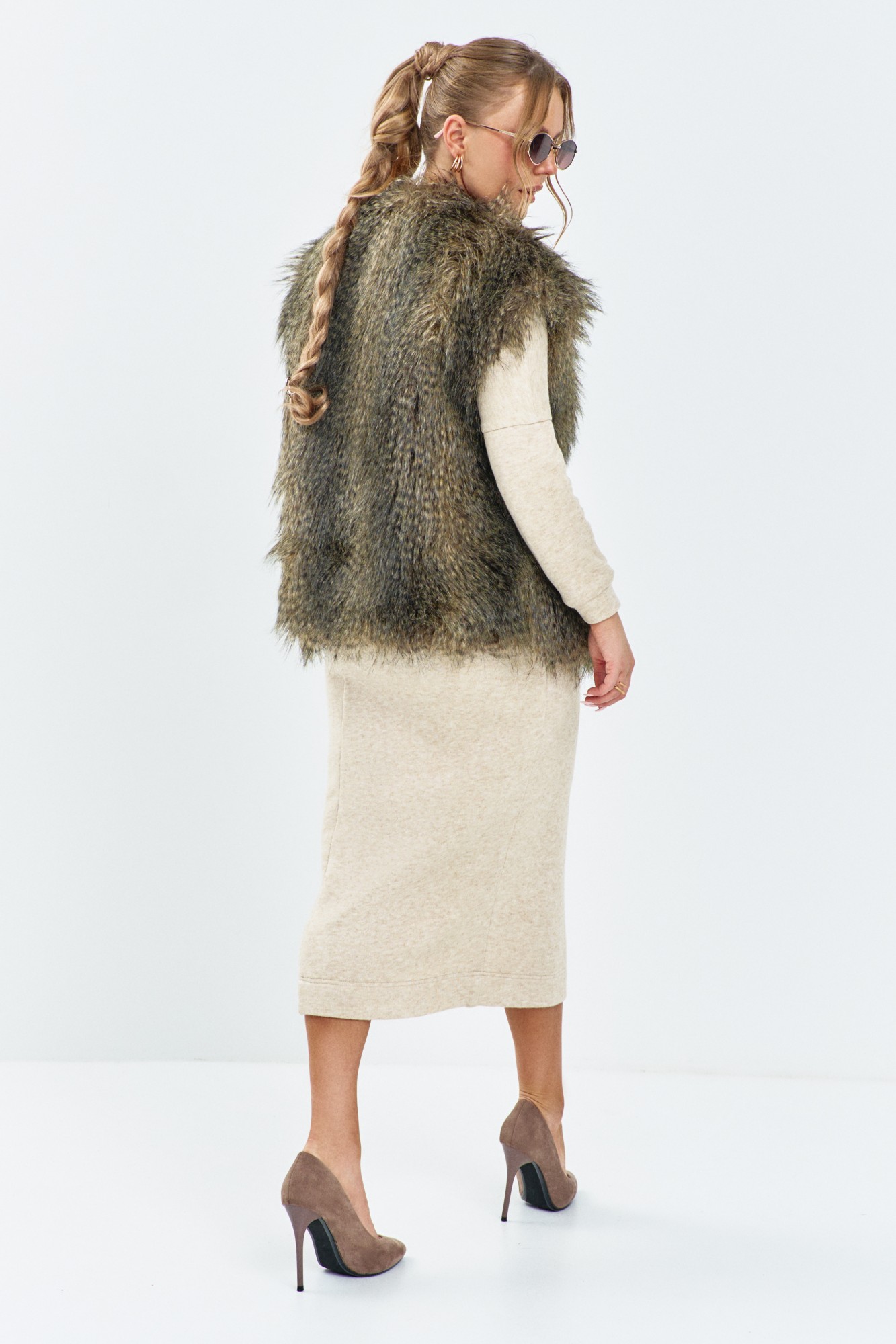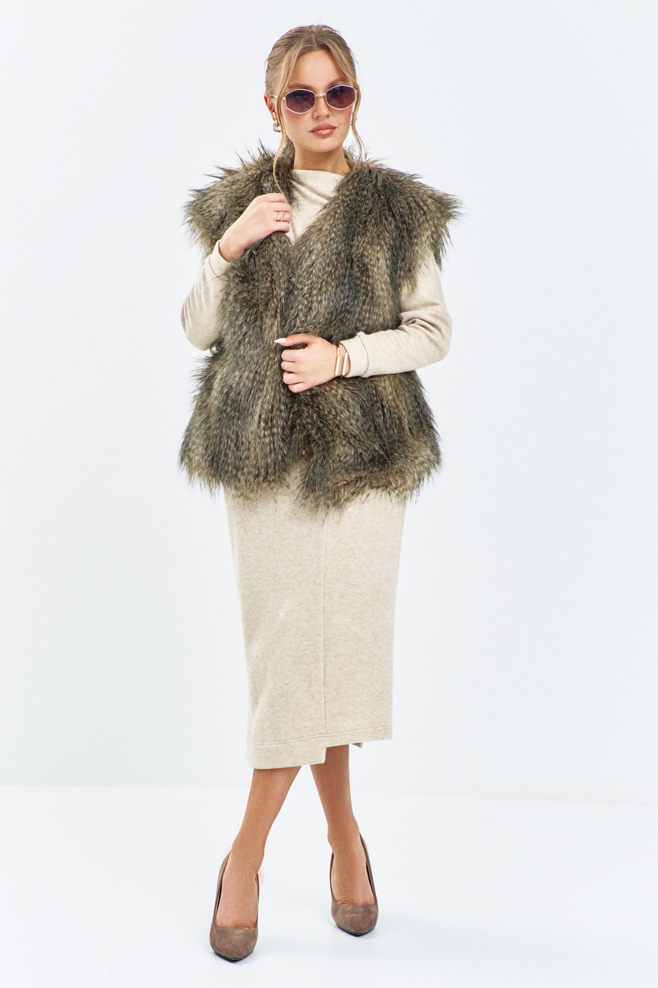 Жилет женский из меха. Жилет женский выполнен из искусственного меха, горловина V- образная, изделие на плотной подкладке, по переду крючек-застежка.