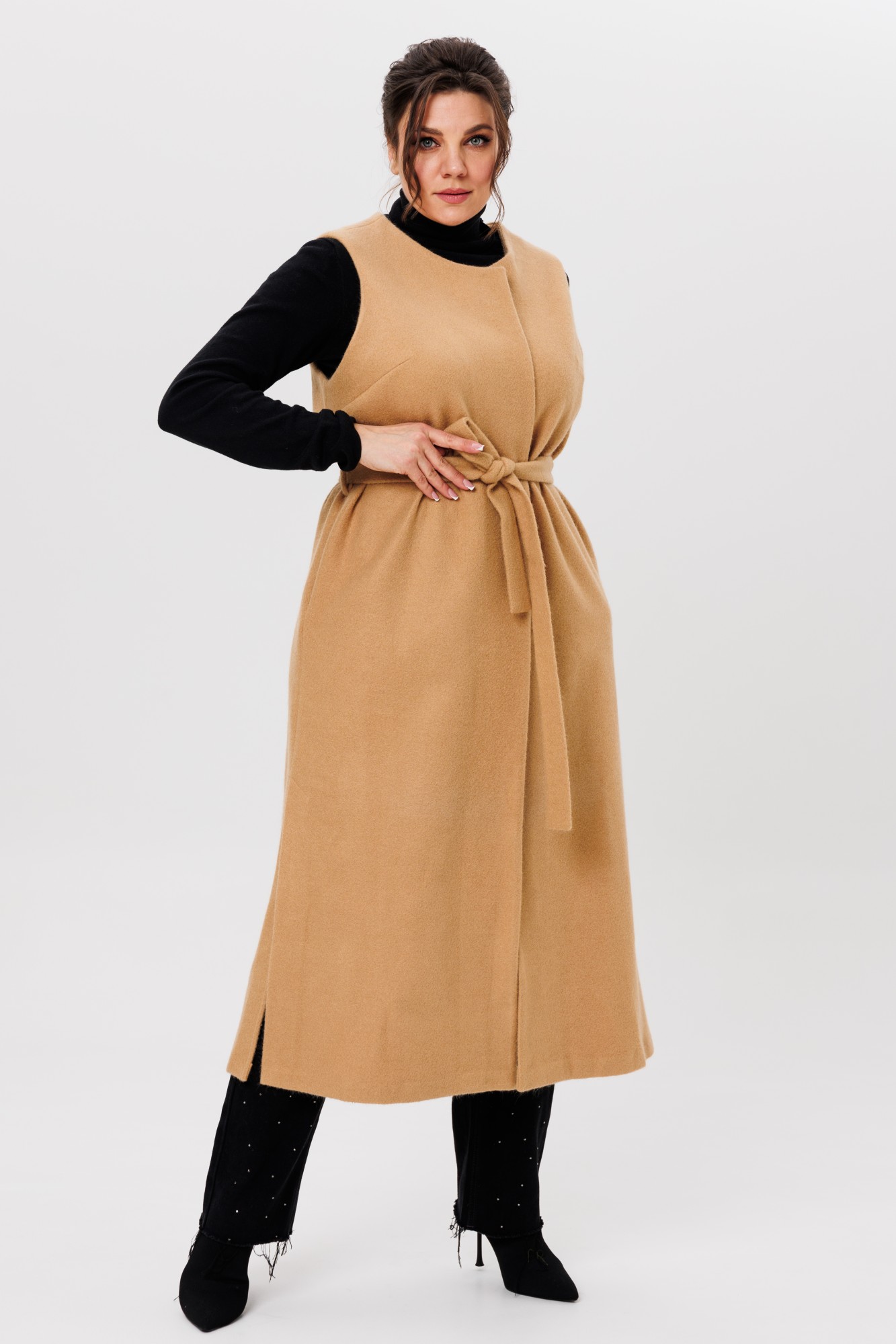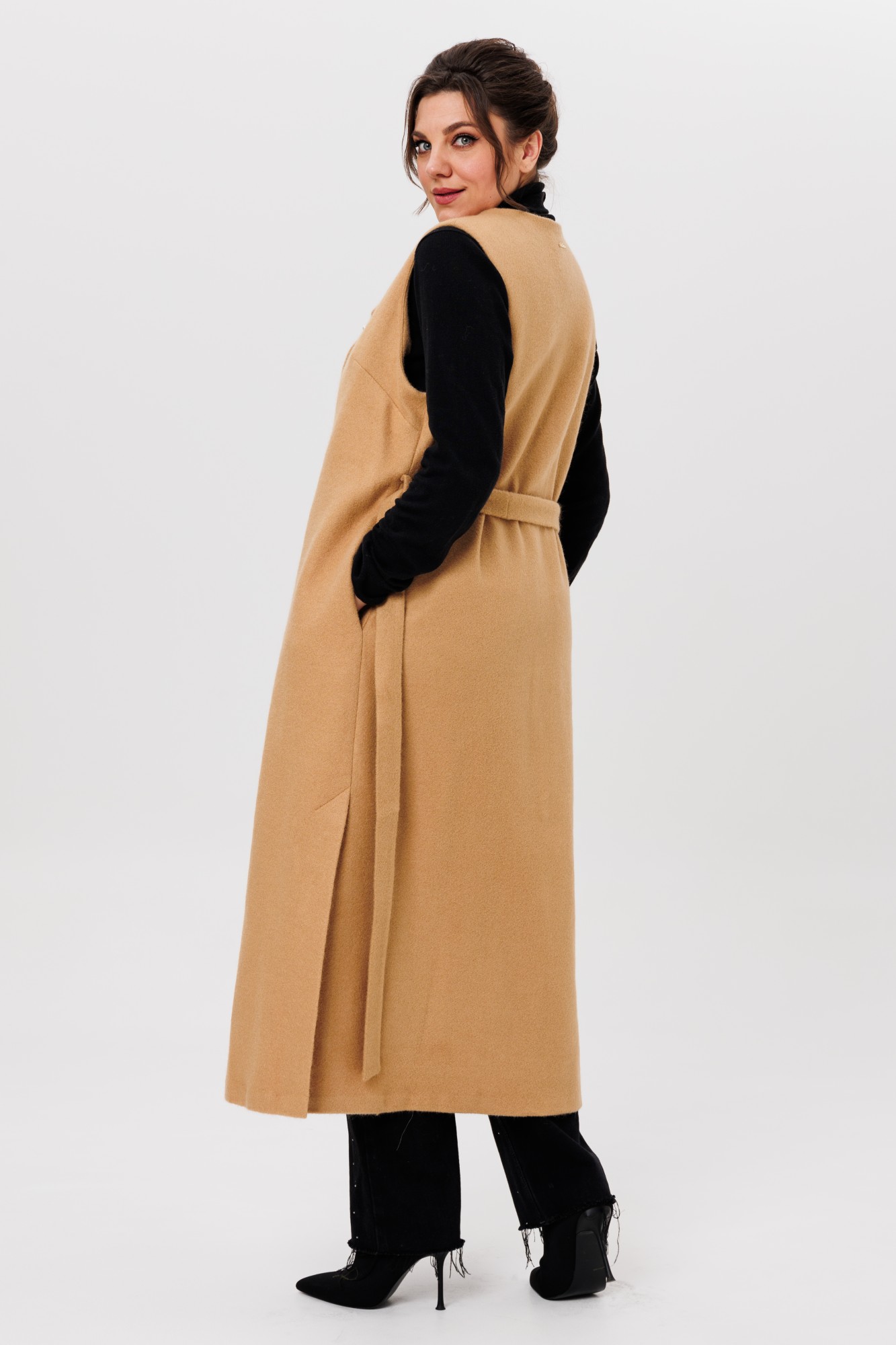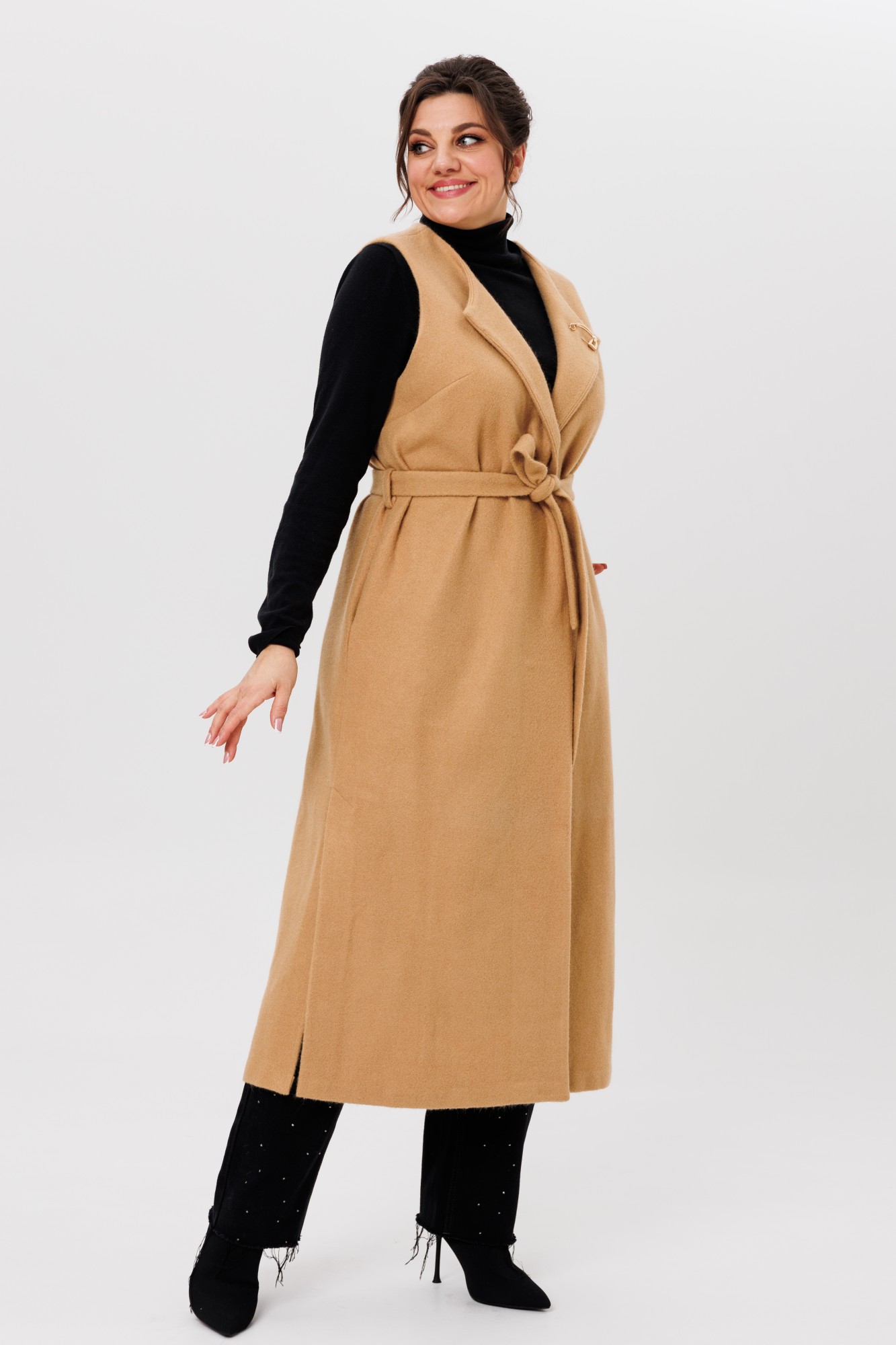 Длинный жилет «must have» в гардеробе этого сезона. Универсальное изделие подойдет к любому стилю одежды. Можно носить как поверх худи, так и классической рубашки, водолазки; как с кроссовками, так и на шпильке. Жилет выполнен из пальтовой ткани без подкладки, в боковых швах есть функциональные карманы, а низ дополняют разрезы. В комплект входит нарядная брошка и пояс.