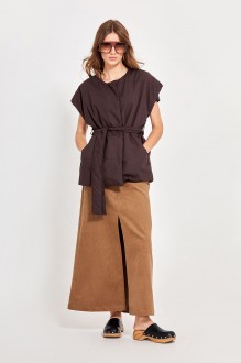 Удлиненный жилет из мягкой двухсторонней шерстяной ткани высшего качества станет универсальным акцентом вашего гардероба. Цельнокроеный воротник «апаш». Спинка цельная, перед с нагрудными вытачками и рельефами, выходящими из пройм. В рельефах переда расположены функциональные карманы. По боковым швам на уровне линии талии прикреплены 2 шлевки для протяжки пояса. Пояс из основной ткани идёт в комплекте. Брошь ручной работы на лацкане воротника - это гарантированная уникальность и всегда актуальный тренд. Рост фотомодели 175 см. Размер у фотомодели – 44. СОВЕТ ОТ СТИЛИСТА: жилет отлично визуально вытягивает рост. Жилет будет идеально смотреться, если накинуть его поверх блузки и прямых классических брюк, обувь: ботильны или лодочки на среднем каблуке.