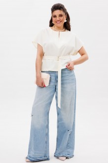 В комплекте с блузой идет пояс, который позволяет подчеркнуть талию и добавить образу женственности. Эта блуза — настоящая находка для создания разнообразных образов: её можно сочетать с брюками, юбками или стилизовать под платье, создавая эффектный и запоминающийся лук.