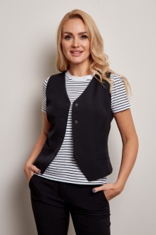 Жилет женский на подкладке из костюмной ткани с застёжкой спереди на петли и пуговицы, с вертикальными рельефами по переду и спинке, с карманами" обманками" по переду.