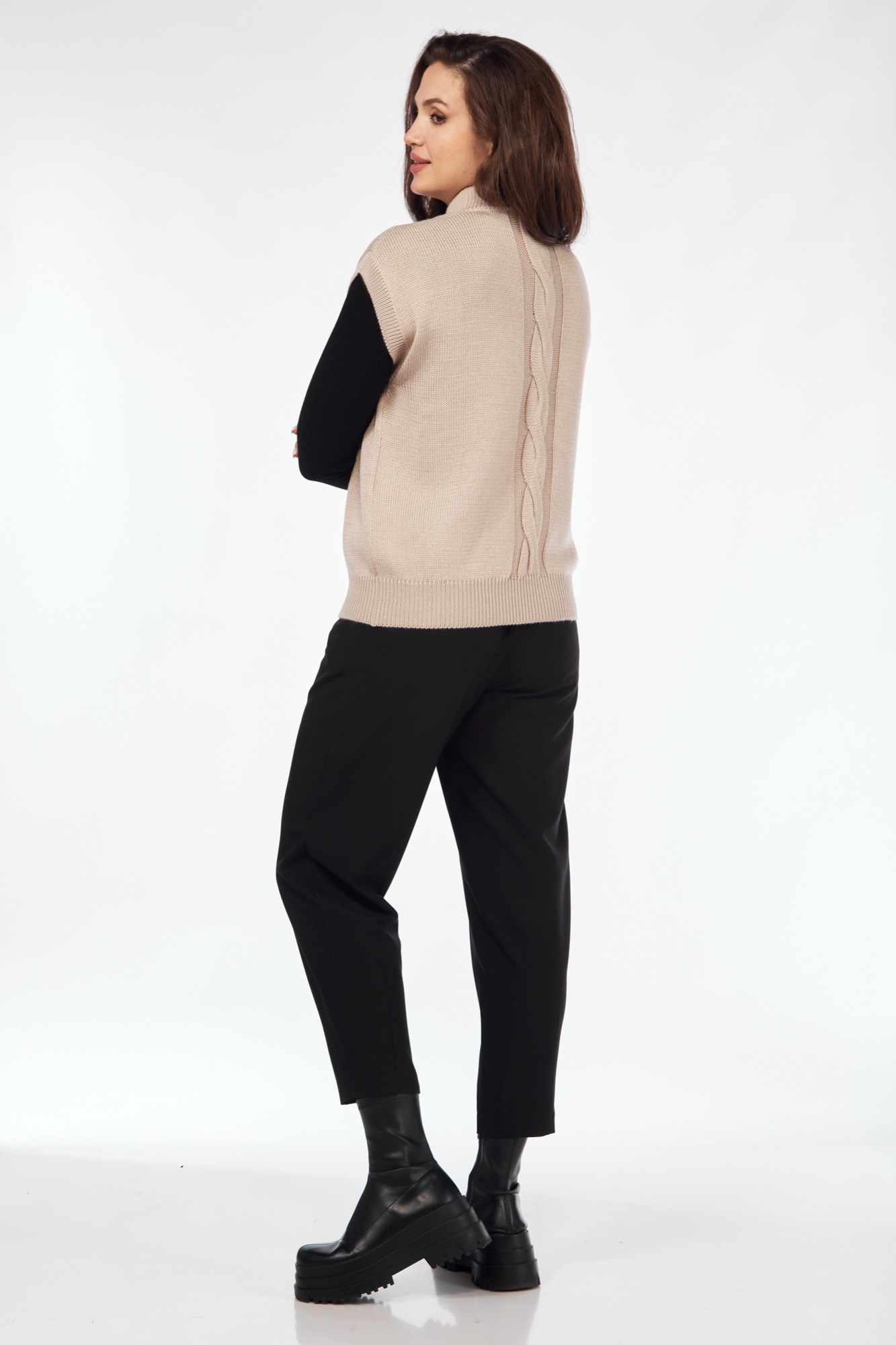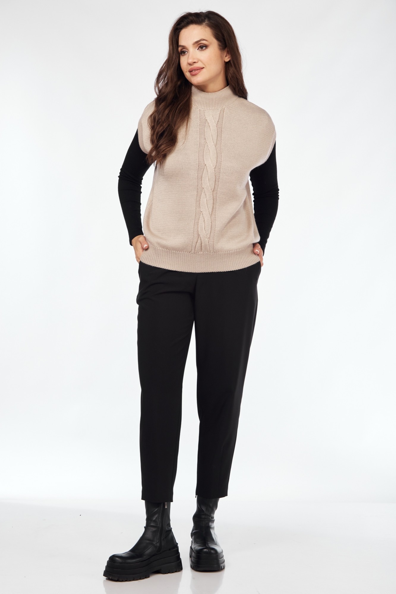 Вязанный жилет имеет укороченный силуэт, углубленные проймы, свободный крой, не сковывающий движения. Большой плюс жилета в том, что он легко надевается и снимается. Плотная вязка и вывязанные косы делают жилет максимально модным и стильным. Низ жилета и проймы декорированы манжетом крупной вязки. Горловина оформлена стойкой. Представленная модель в составе имеет шерсть, отлично держит форму, не растягивается. Для того, чтобы наш жилет радовал Вас как можно дольше, важно обратить внимание на уход: стирать при температуре не выше 30 градусов в щадящем режиме, сушить в горизонтальном положении, утюжить в режиме отпаривания, появившийся пилинг удалять с помощью спец. машинки.