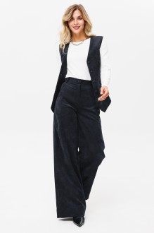 Жилетка женская из текстильной ткани (вельвет-штрукс) на подкладке. По переду расположены нагрудные вытачки, прорезные карманы в "рамку". Спинка с рельефами. По линии талии вставлен хлястик. Застежка на петлях-пуговицах. Вырез горловины V-образный.