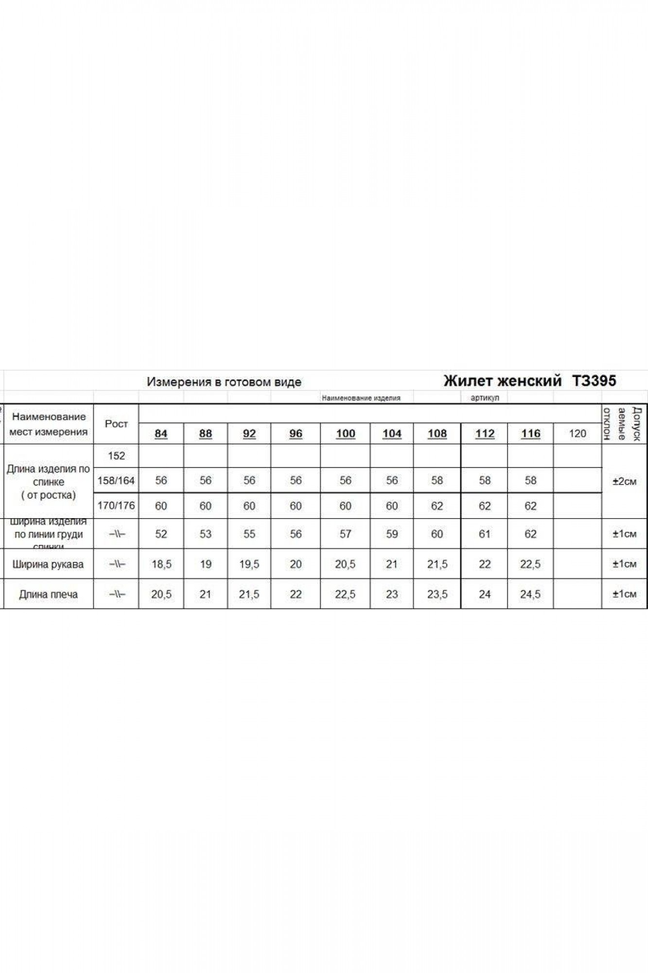 Таблица размеров