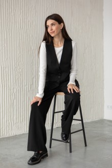 Свободный двубортный жакет на подкладке классического кроя на четырех пуговицах. Рукав со спущенной линией плеча. Два больших накладных кармана . В сочетании с брюками арт. 738 составляют стильный костюм.