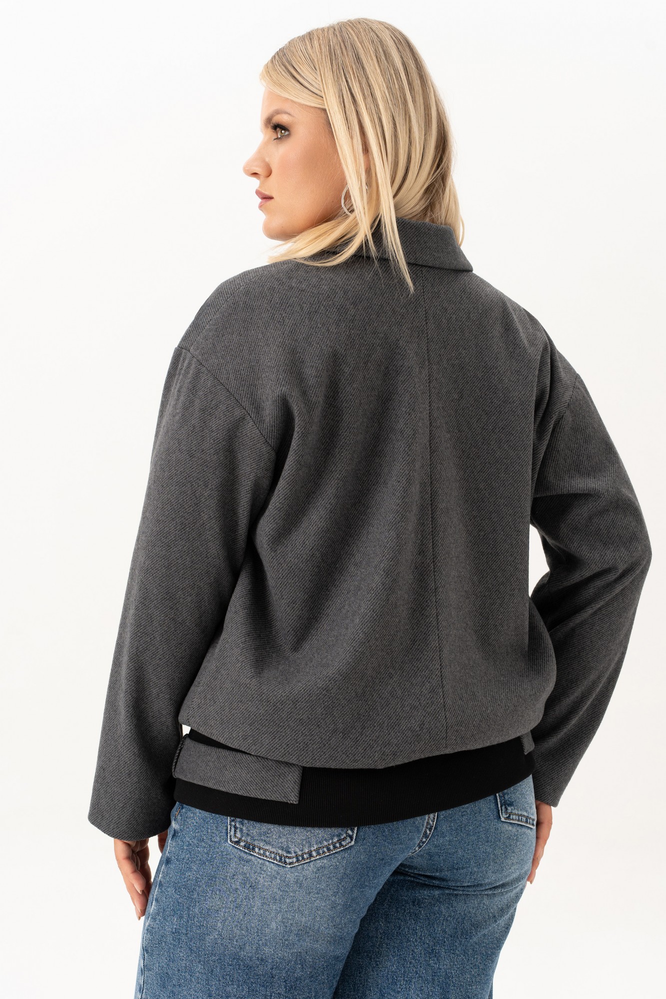 Представляем вам стильный бомбер который станет идеальным дополнением к осеннему или весеннему гардеробу любой девушки или женщины! Эта модель выполнена из мягкой пальтовой ткани с элементами кошкарсэ, которая не только выглядит роскошно, но обеспечит комфорт и свободу движений . Воротник, лацкана и пата по низу изделия добавляют модели оригинальности и дерзкого шарма. На бомбере обработаны прорезные карманы с листочкой. Линия плеча слегка спущена, рукав втачной длинный. Этот жакет - отличный выбор для прохладных осенних дней. Теплый и стильный, он станет незаменимым спутником в повседневных приключениях. Его универсальный цвет легко впишется в любой образ, а качественный материал прослужит Вам не один сезон.