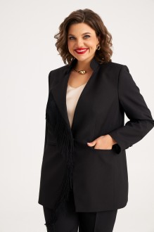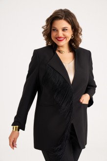 Модный свободный на подкладке жакет. Ассиметричная форма полочки, карманы в рамку прорезные. Край борта фигурной формы. Изюминку жакету придает бахрома по правому борту и лацкану. Центральная застежка на петлю и пуговицу. Рукав втачной, длинный с закрытой шлицей по низу и пуговицами. Данный жакет станет идеальным базовым предметом гардероба.