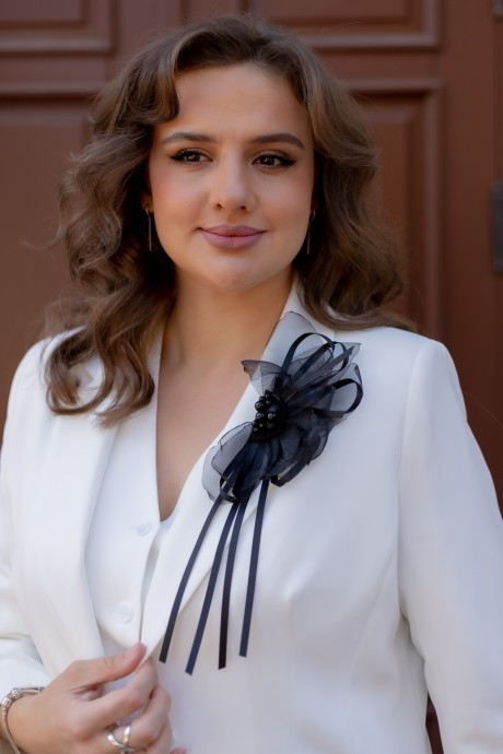 Красивый женский жакет со съёмным цветком не оставит равнодушной ни одну модницу! Полуприлегающий классический покрой подчеркнет достоинства фигуры, а плотная ткань обеспечит комфорт в любой ситуации. Он идеально подойдет как на вечерние, праздничные и торжественные мероприятия так и для создания разнообразных нарядов на каждый день благодаря универсальности и стильному дизайну.