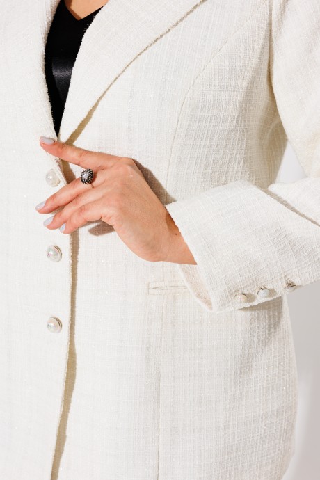 Белый жакет в стиле Шанель от Анелли – это воплощение элегантности и утонченности. Приталенный, чуть удлиненный силуэт этого жакета придаст вам уверенности и деловитости, сохраняя при этом нежность и женственность.
