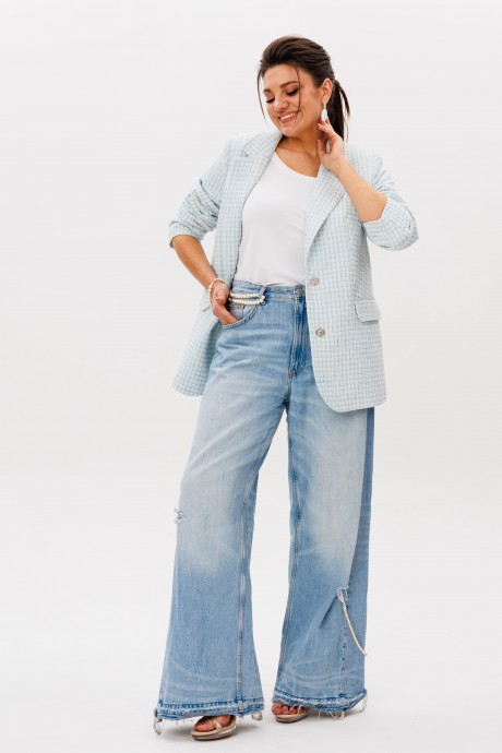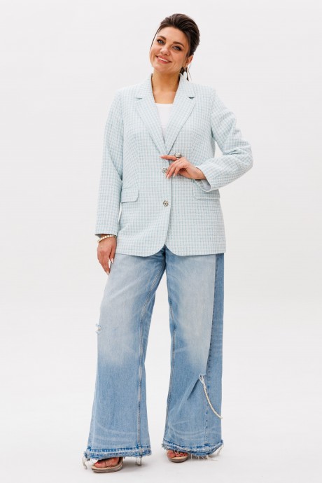 На модели в жакете цвета «морозная мята» футболка 1546.
