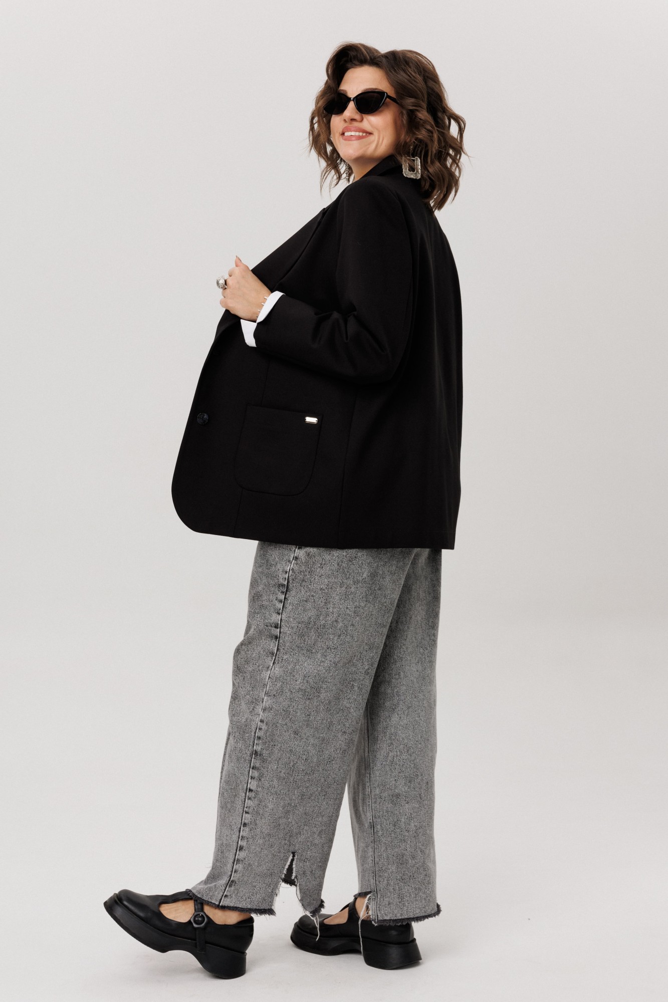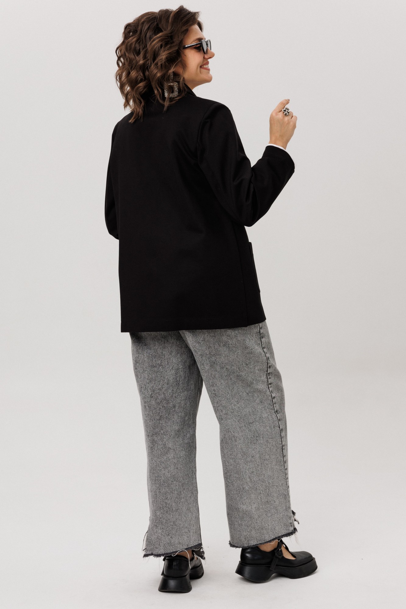 Длинный втачной рукав и два накладных кармана делают модель не только стильной, но и практичной. Жакет легко впишется в повседневный гардероб — он будет одинаково хорошо смотреться с офисными брюками, джинсами или свободными брюками, добавляя образу лёгкую небрежность.