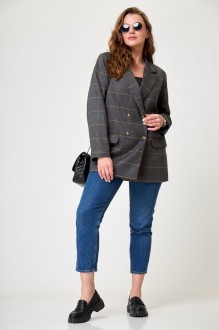 Прямой, слегка свободный силуэт, втачные рукава, двубортная застёжка на пуговицы, функциональные карманы с клапанами. Спинка со средним швом.