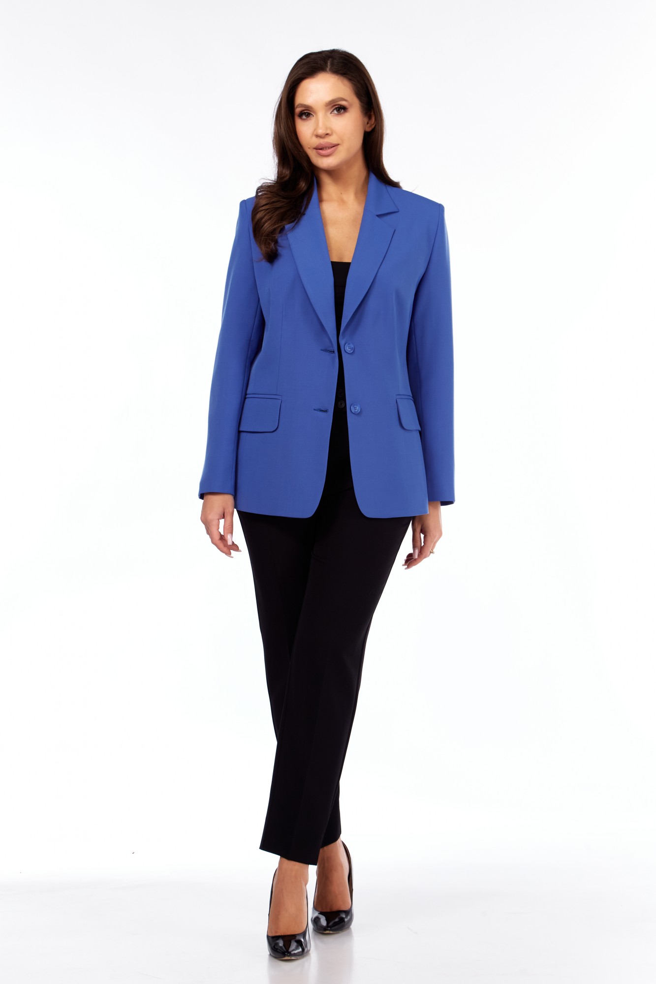 Жакет женский полуприлегающего силуэта, с втачным рукавом, воротник отложной с лацканами, по переду- карманы с клапанами, по низу рукава шлица с пуговицами, застёжка спереди на петли и пуговицы. Изделие на подкладке.