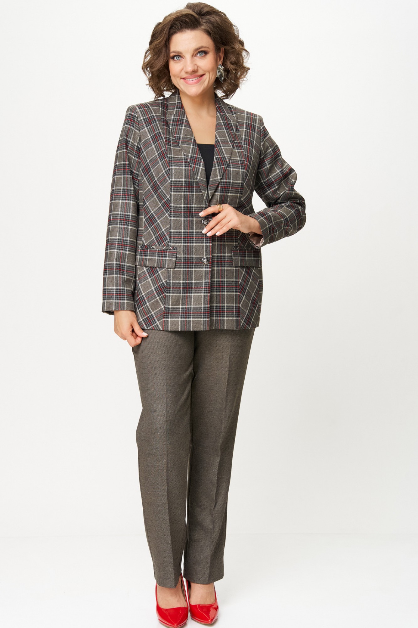 Жакет (пиджак) БелЭльСтиль 412 серо-коричневая клетка