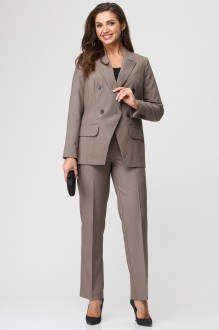Двубортный жакет, свободного кроя, на подкладке. По переду имеется отрезной бочок и вертикальные вытачки. С прорезными карманами с клапаном и двумя обтачками. Спинка цельная. Воротник пиджачного типа. Рукав двухшовный, по низу рукава обработана шлица на петли-пуговицы. Длина рукава 63 см, длина по спинке 74 см.