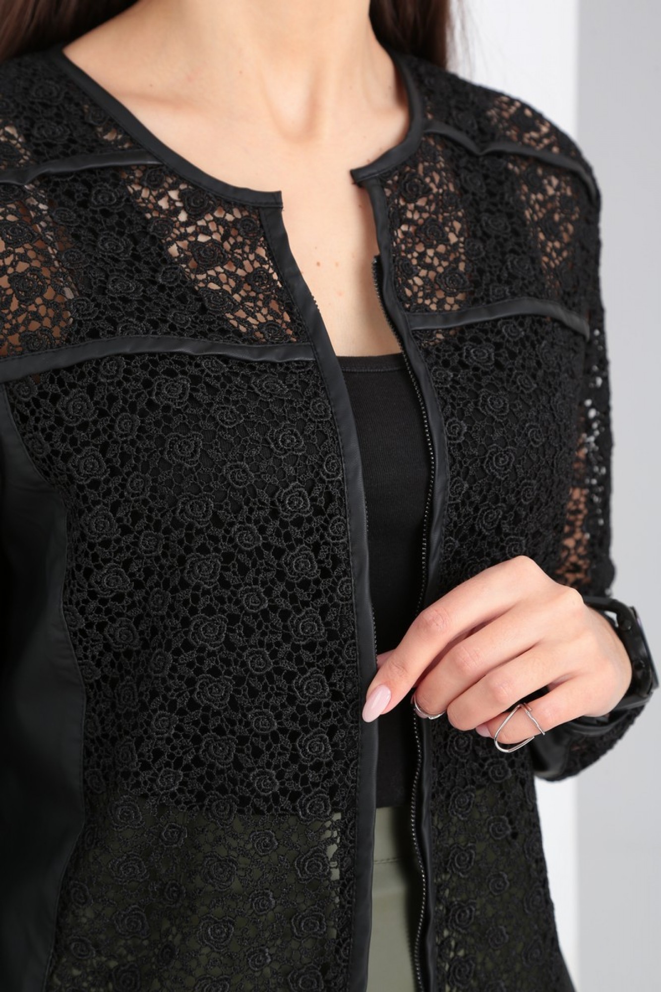 Нарядный женский жакет от Celentano из экокожи с кружевом.