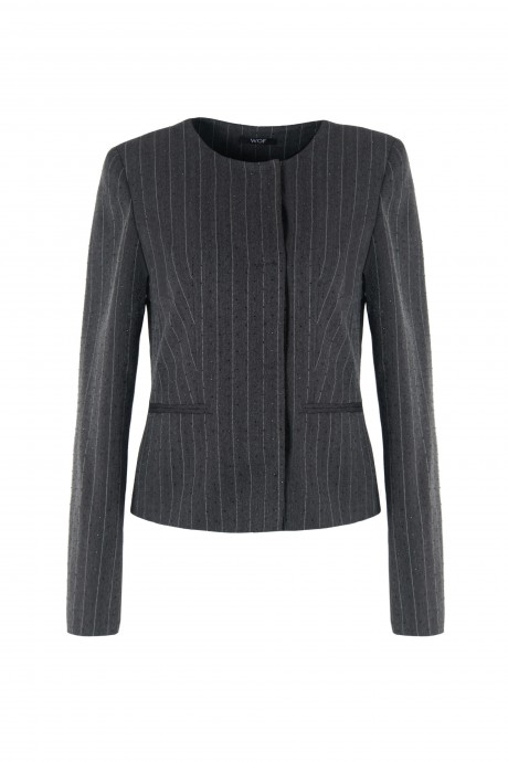 Жакет женский, однобортный, полуприлегающего силуэта, на подкладке, без воротника. Застежка на пришивные кнопки. На переде карманы «в рамку». Рукава втачные, длинные, двухшовные.