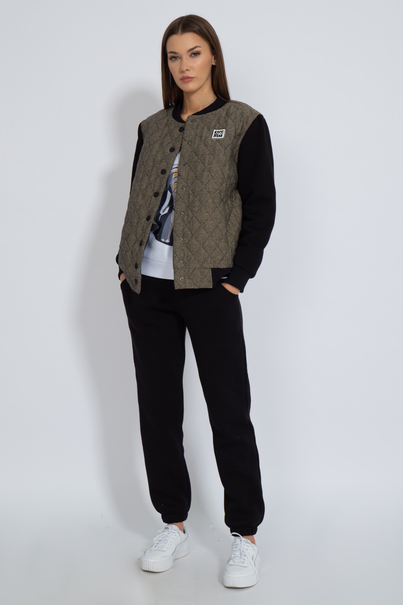 Жакет утепленный из жаккардовой ткани с элементами из 3-х ниточного футера с начесом на подкладке из премиальной ткани.