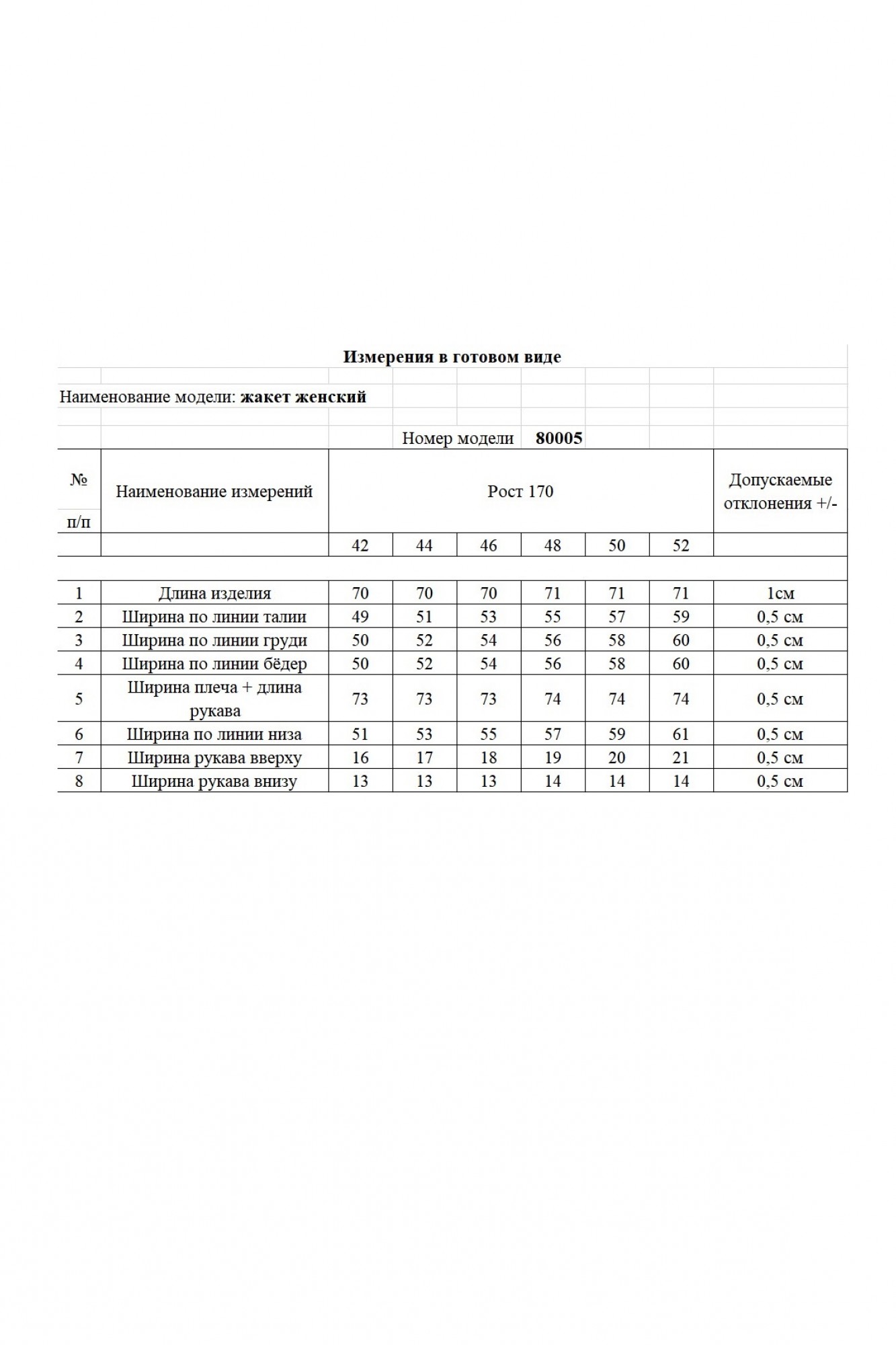 Таблица размеров