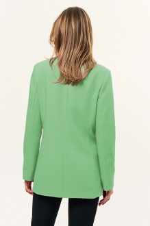 Жакет на подкладке, удлиненный прямого силуэта, без шлицы, в подрезе переда - карман в рамку с клапаном. Рукав длинный, двухшовный. Воротник - шаль, низ жакета с закругленными бортами, застежка заниженная на потайной металлический крючок.