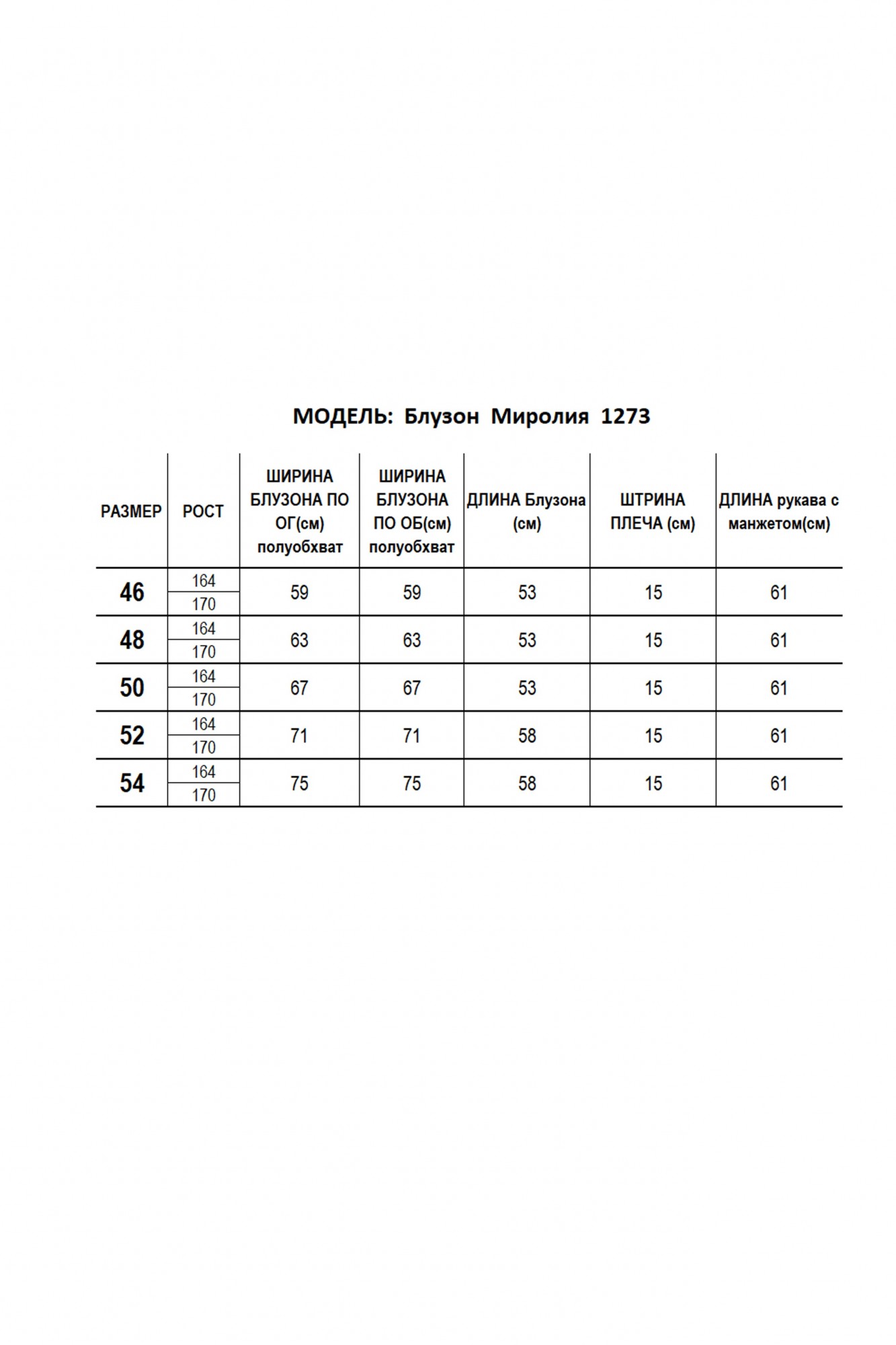 Таблица размеров