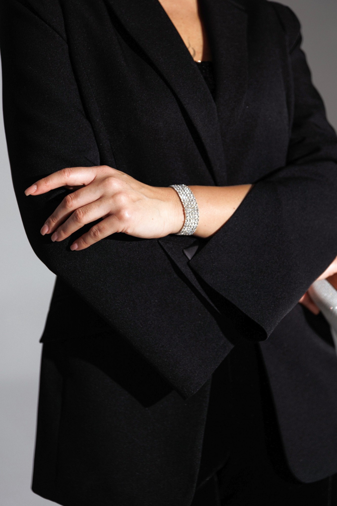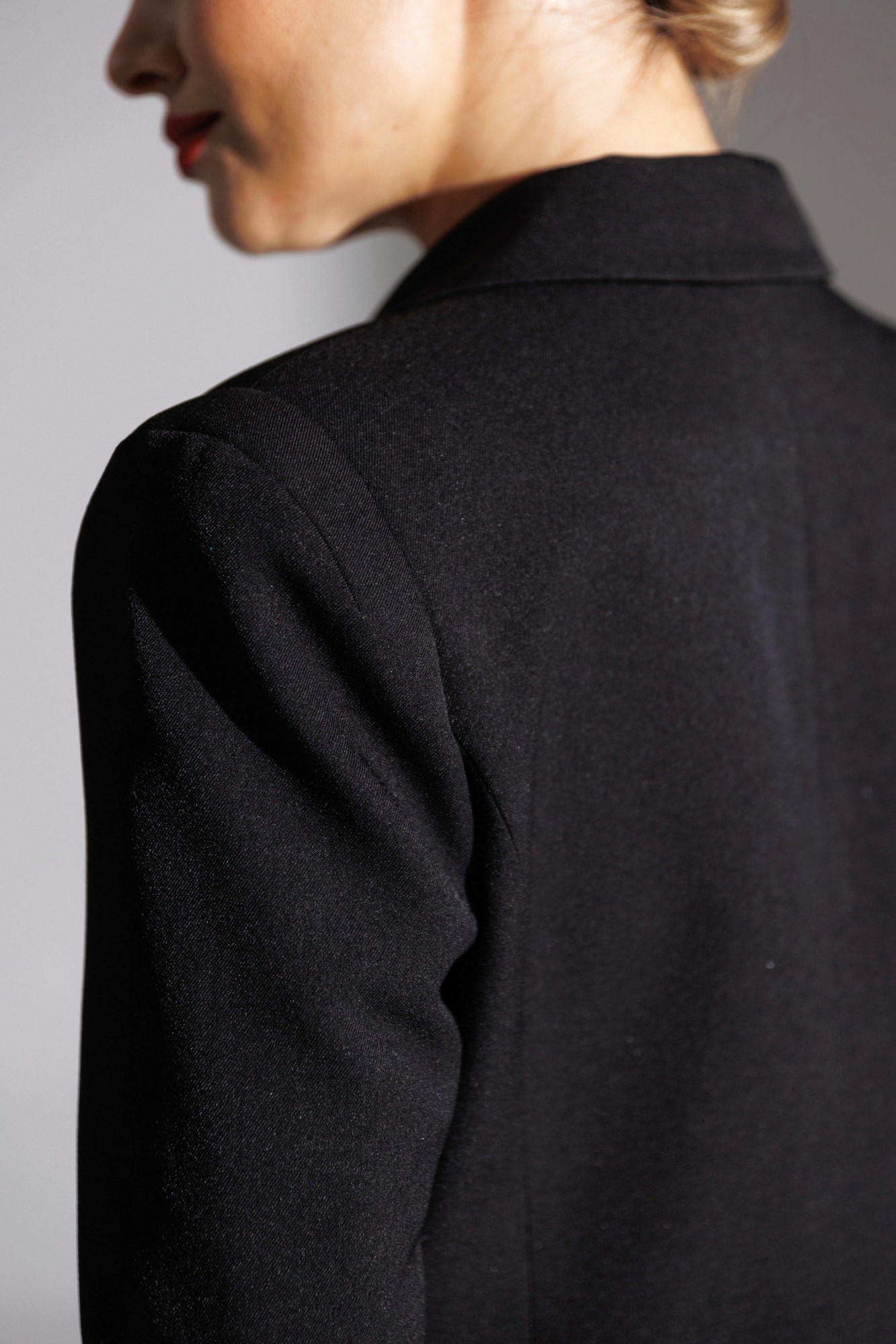 Этот жакет - воплощение стильной трансформации. Его классический крой выполнен из безупречной костюмной ткани, но в деталях скрывается своенравный характер. Жакет полуприлегающего силуэта. Модель отличается аккуратным кроем и стильными деталями. На передней части жакета обработаны вертикальные рельефы, идущие от проймы до уровня кармана и от кармана до низа, что придаёт силуэту выразительность и стройность. Воротник пиджачного типа добавляет классической элегантности. Застёжка центральная бортовая на петлю-пуговицу. Карманы в рамке с клапанами, гармонично расположены на передней части жакета. Спинка с центральным швом и вертикальными рельефами, идущими от проймы. Рукава двухшовные с отрезной деталью по окату и разрезами внизу добавляют свободы движению и делают модель более интересной. Жакет на подкладке. Утром Вы можете пойти в нем на деловую встречу, а вечером - на коктейльную вечеринку, просто сменив аксессуары.