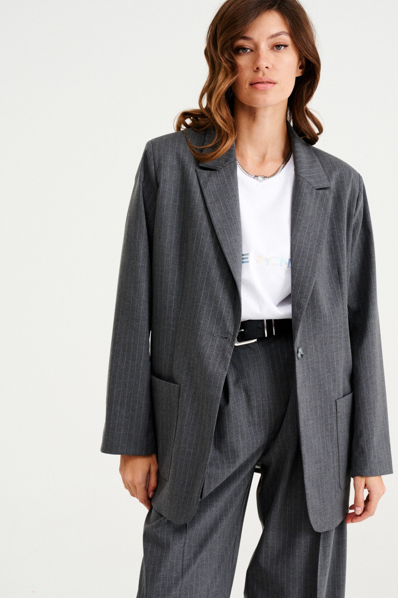Оверсайз серый жакет в полоску