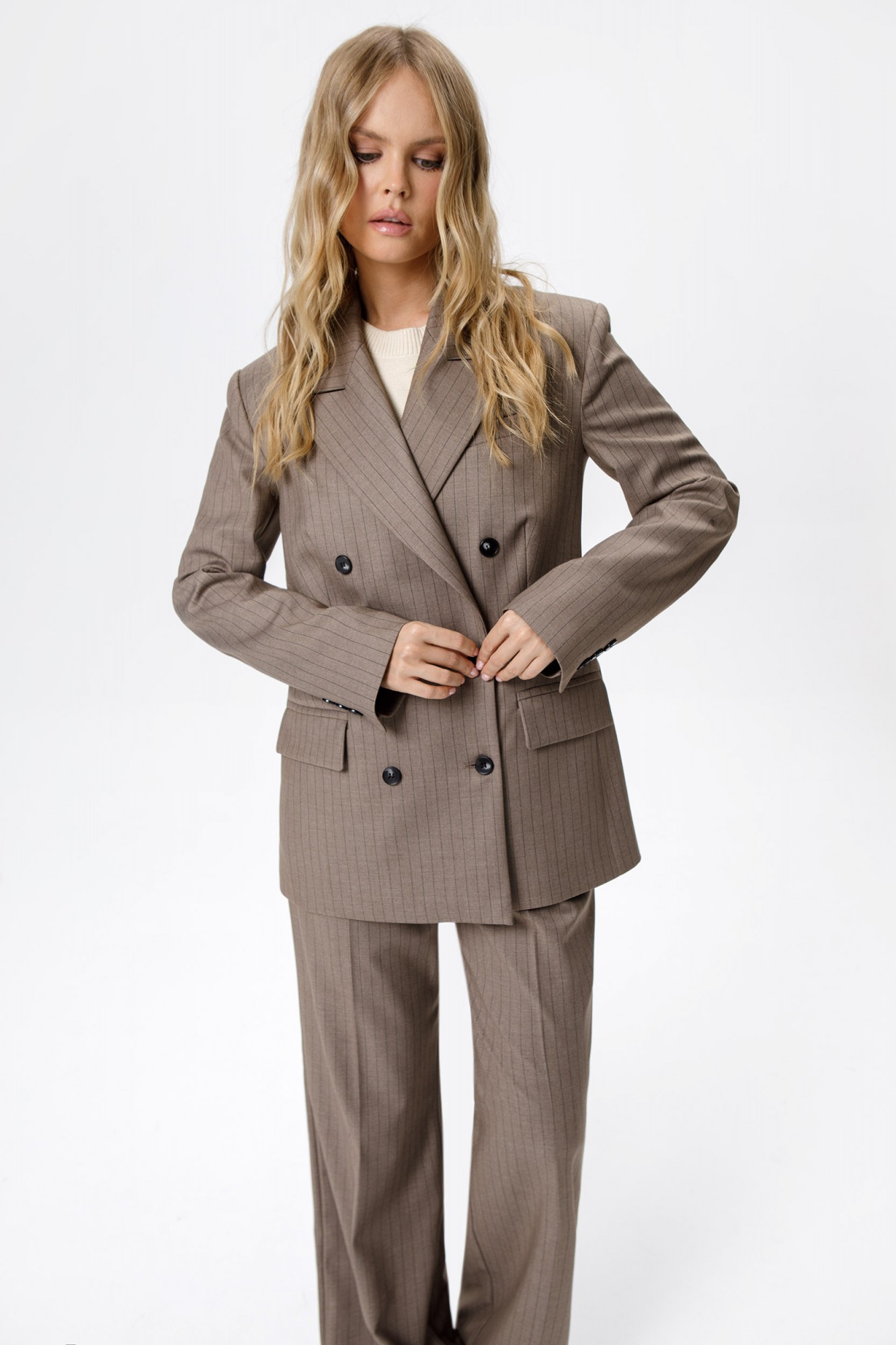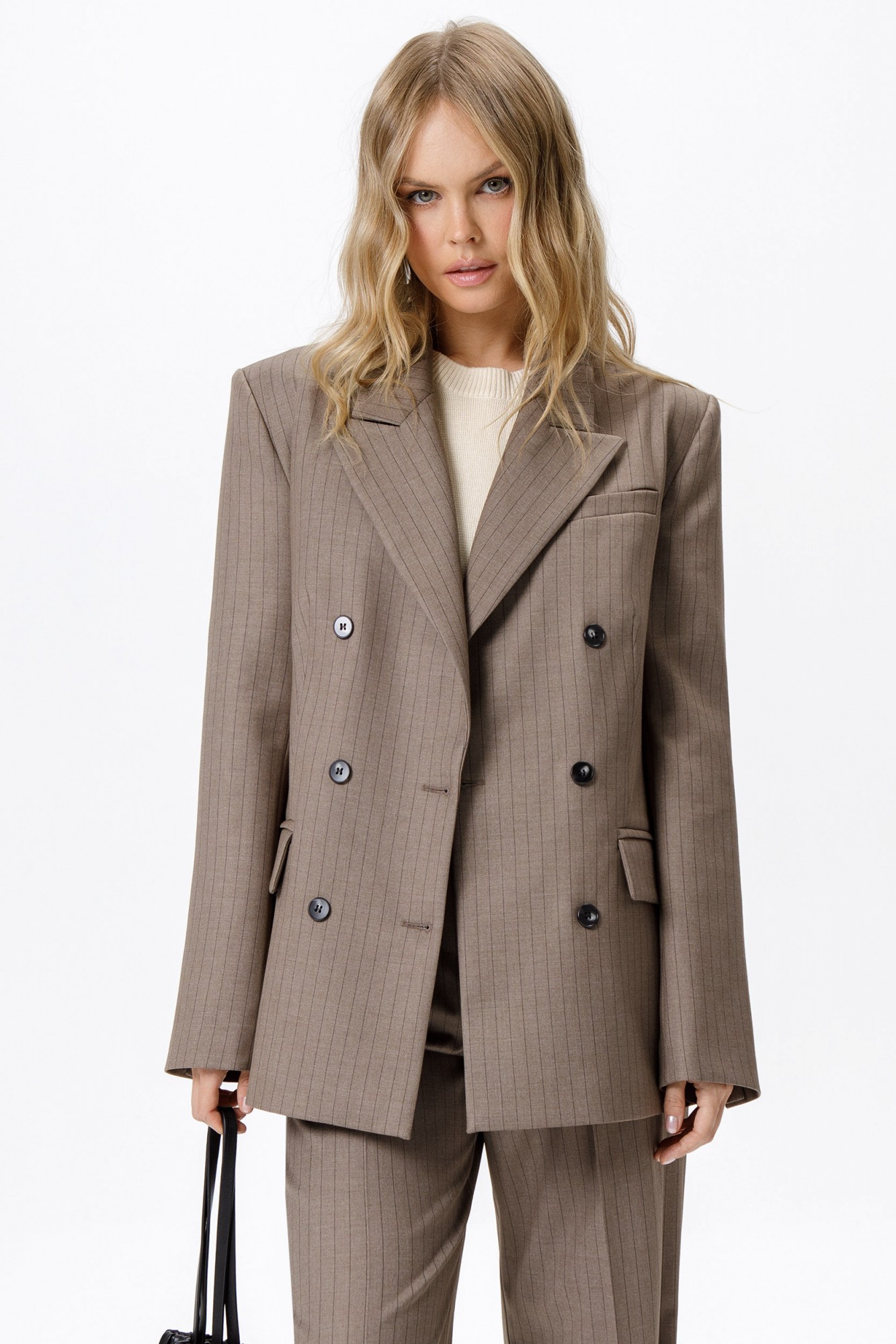 Двубортный жакет свободного кроя. Детали: жакет свободного покроя и полуприлегающего силуэта, двубортная застежка на петли и пуговицы, отрезные бочки, пиджачный воротник, функциональные карманы, жакет на подкладке.