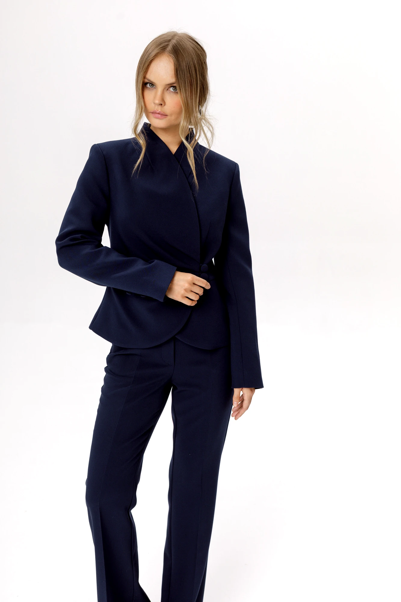 76% полиэстер 20% вискоза 4% спандекс, подкладка- 55% вискоза 45% полиэстер