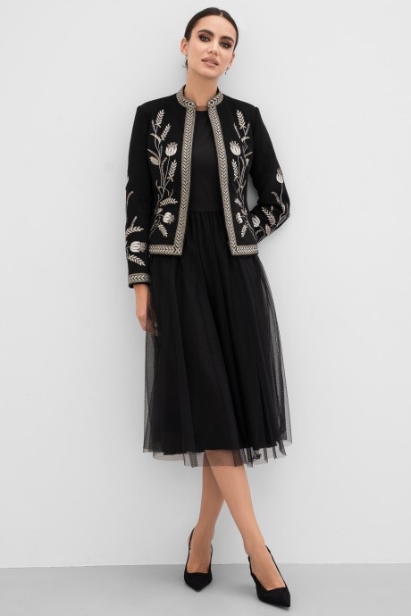 46:длина жакета по среднему шву спинки – 54,5 см (±2,0 см), ширина на уровне проймы – 49,0 см (±1,0 см), ширина на уровне линии талии – 41,5 см (±1,0 см), ширина жакета по низу – 50,0 см (±1,0 см), длина рукава жакета – 60,5 см (±1,0 см), ширина рукава жакета вверху – 18,0 см (±1,0 см), ширина рукава внизу – 12,5 см (±0,5 см), длина плеча жакета – 12,5 см (±0,5 см).