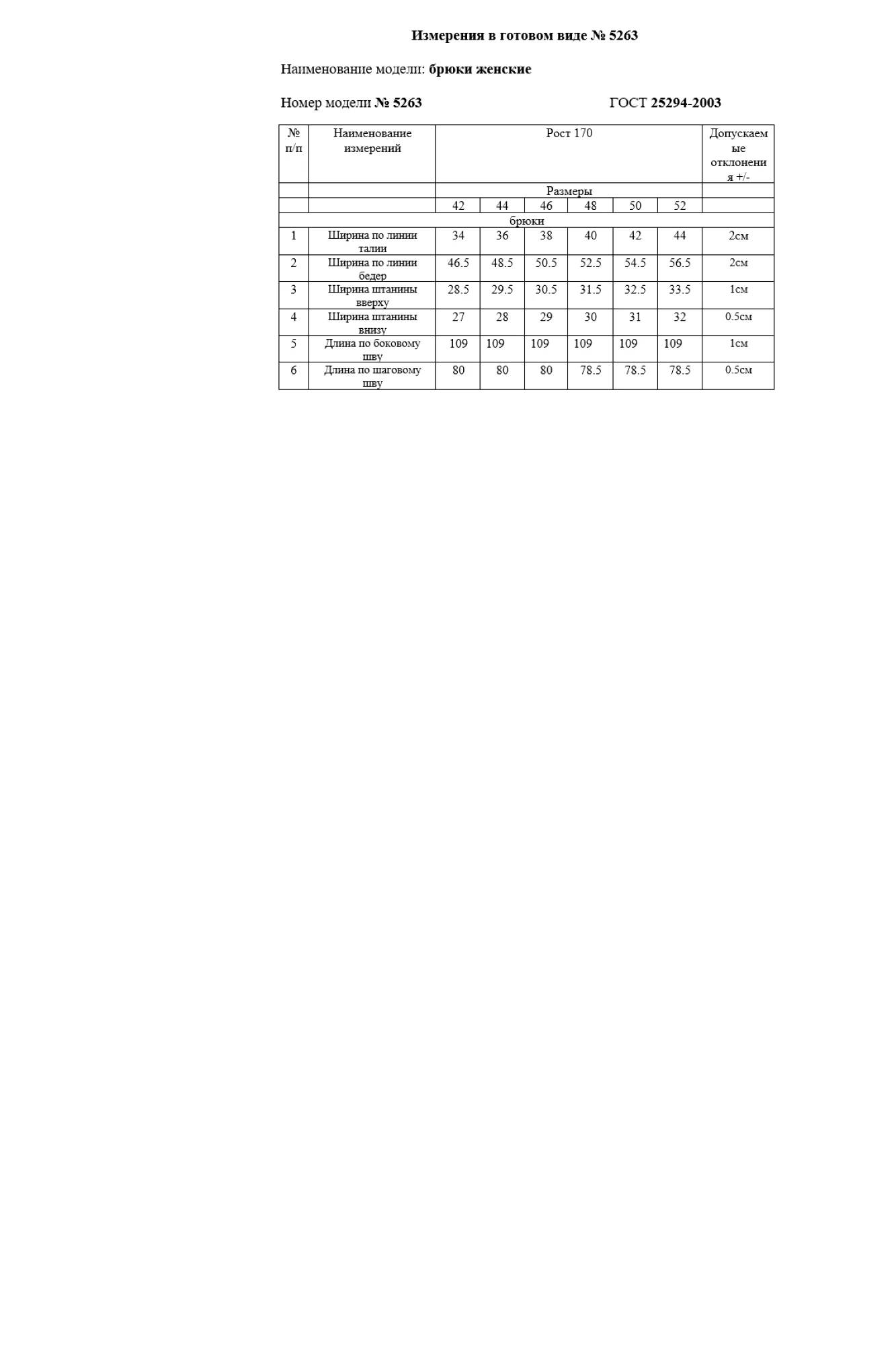 Размеры одежды