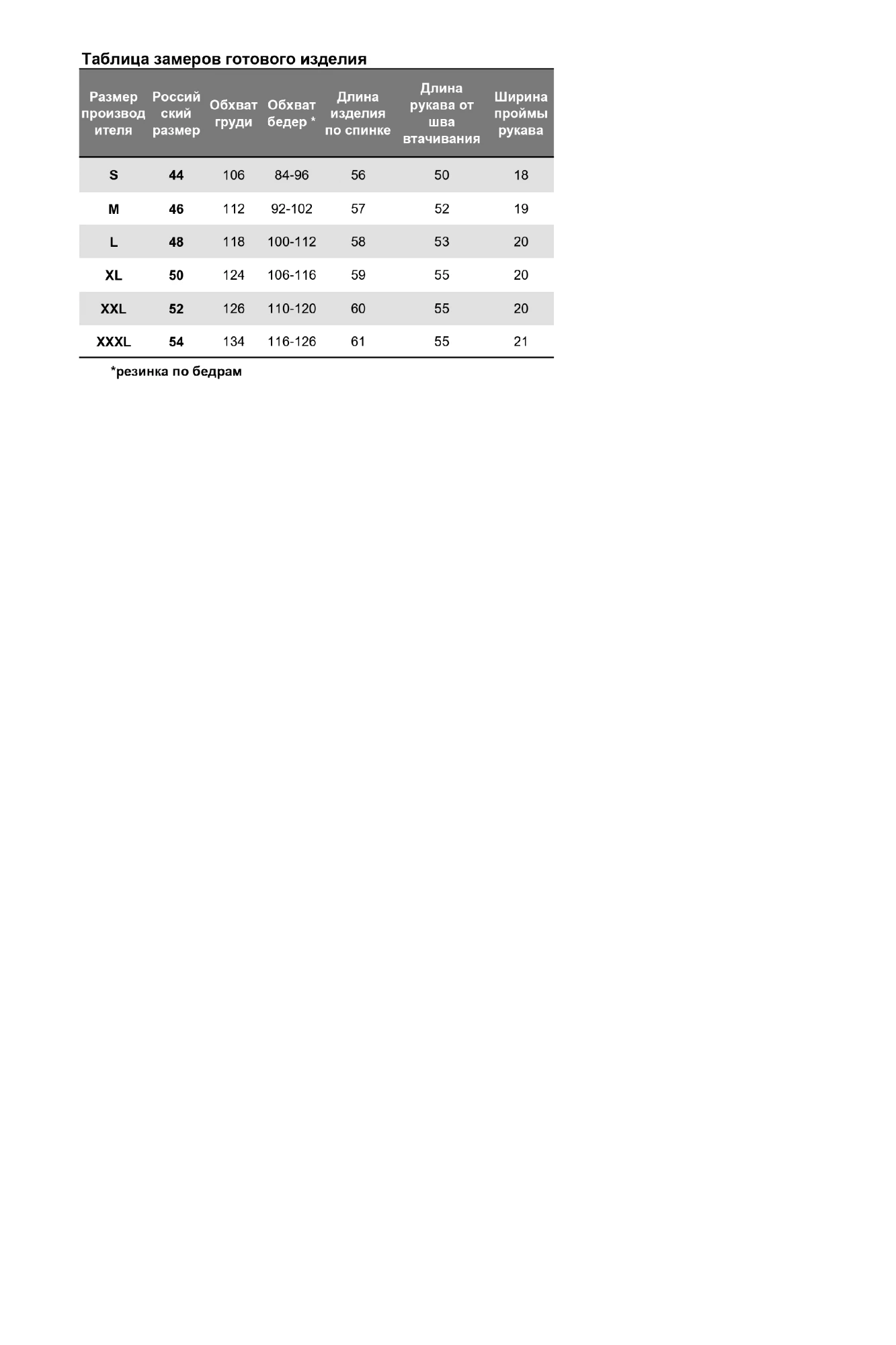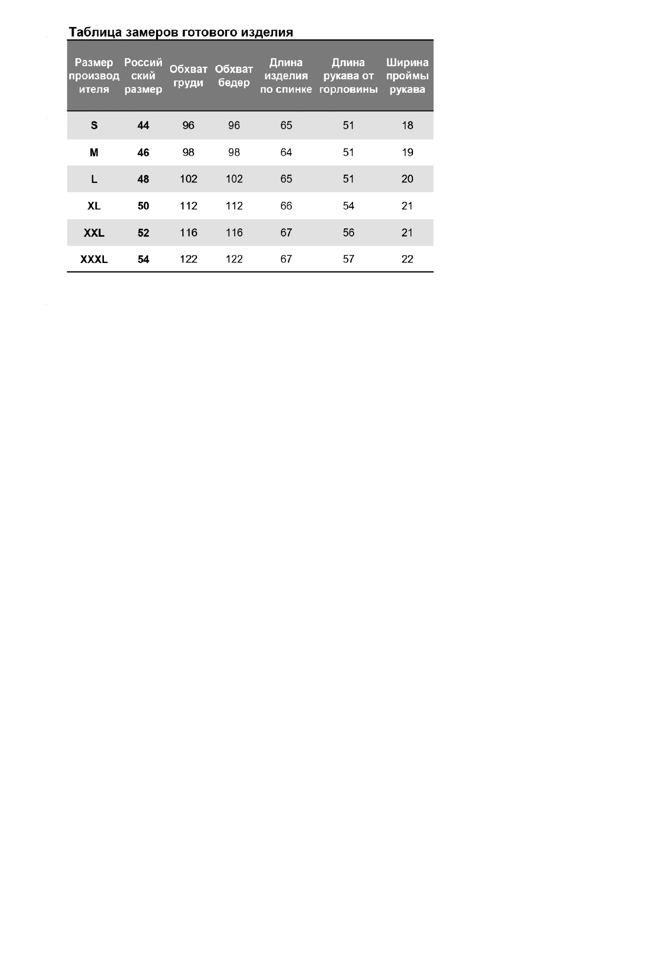 Размеры одежды